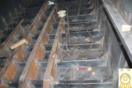 絞吸式抽沙船邊艙空艙內部構造:采用100*60折邊鋼骨架,船舷板中間加強龍骨,每三米一隔艙,增加安全性。